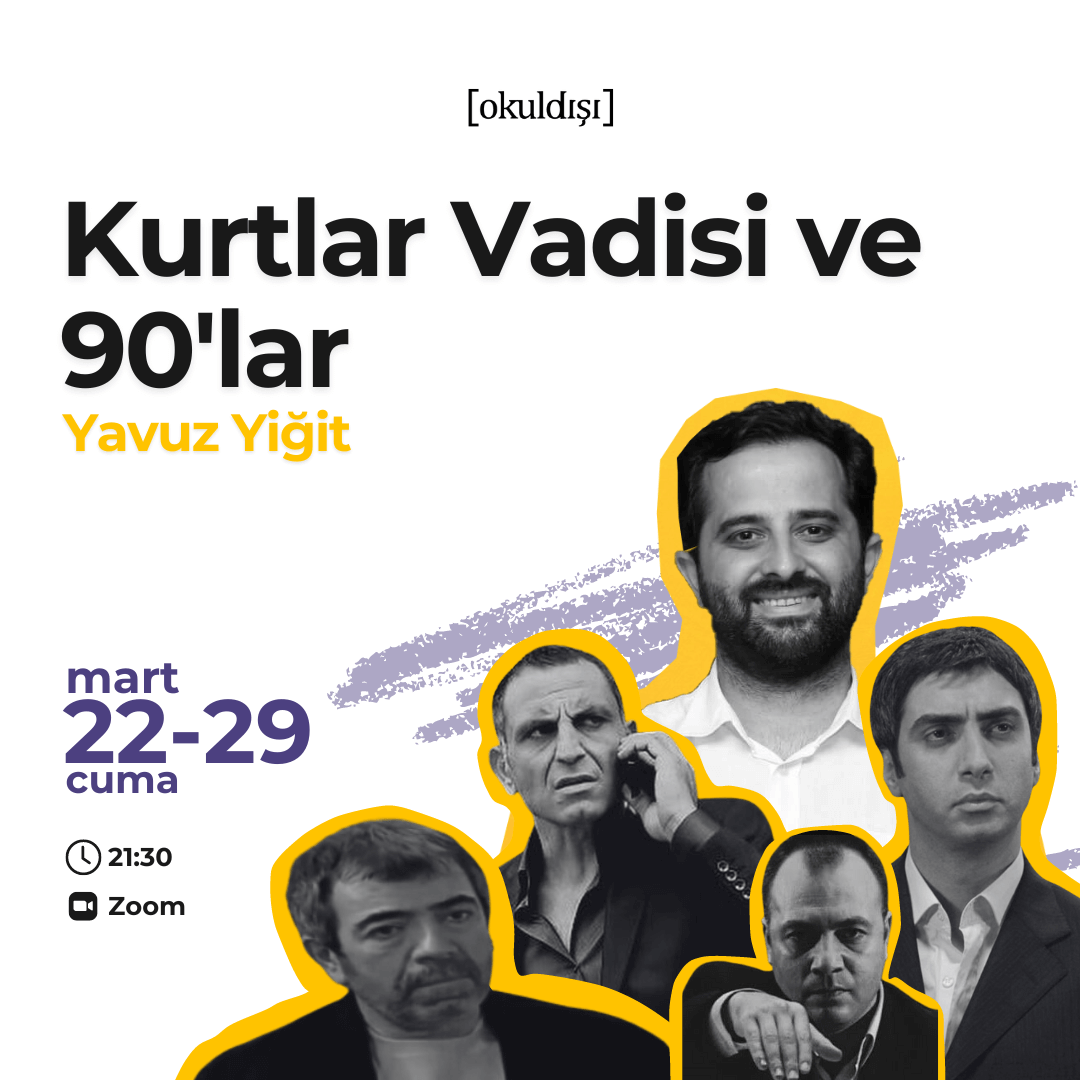2 oturumdan oluşan “Kurtlar Vadisi ve 90’lar” eğitimi 22 Mart ve 29 mart Cuma saat 21.’de Eğitimci & Yazar Yavuz Yiğit ile OkulDışı zoom platformunda başlıyor.