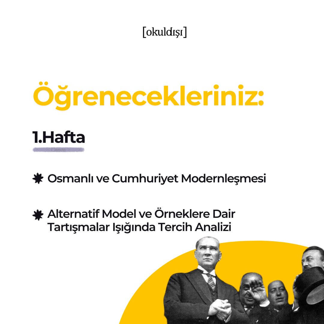 Eğitmenimiz Bekir Berat Özipek ile beraber Türkiye’nin yakın tarihinin derinliklerine inip modern Türkiye’yi anlamaya çalışacağımız “Modern Türkiye Okumaları” eğitimimize meraklısı olan herkesi bekliyoruz! 🤓📚