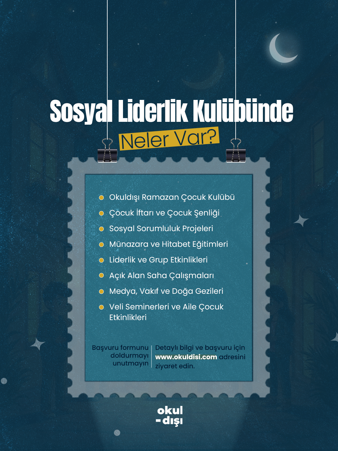 🌙 Okuldışı Çocuk Ramazanında Liderlik Kulübümüz güven, adalet, paylaşma, iyilik ve sorumluluk gibi değerleri merkeze alan özel içeriklerle dolu.